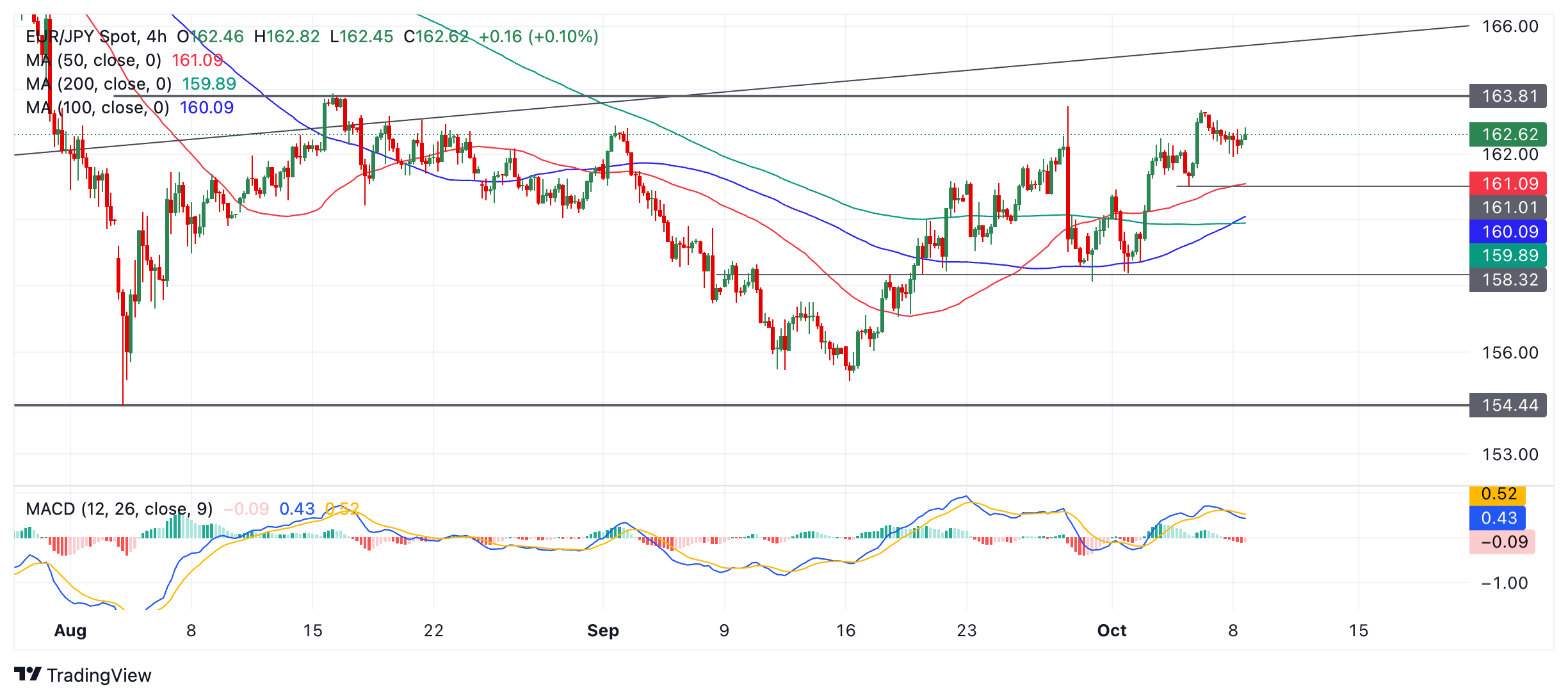 欧元/日圆几乎触及长达九周的区间顶部,随后陷入停滞,并展𫔭浅回调,跌至 162.50。