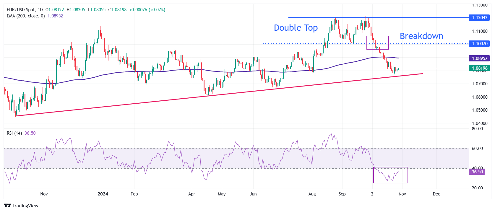 周二欧洲时段,欧元/美元小幅上涨至 1.0800 整数关口附近。该主要货币对盘整,因美元(USD)在本周一系列美国(US)宏观经济数据公布前紧抓涨势不放,且11月5日将举行的美国总统大选的不确定性不断增加。