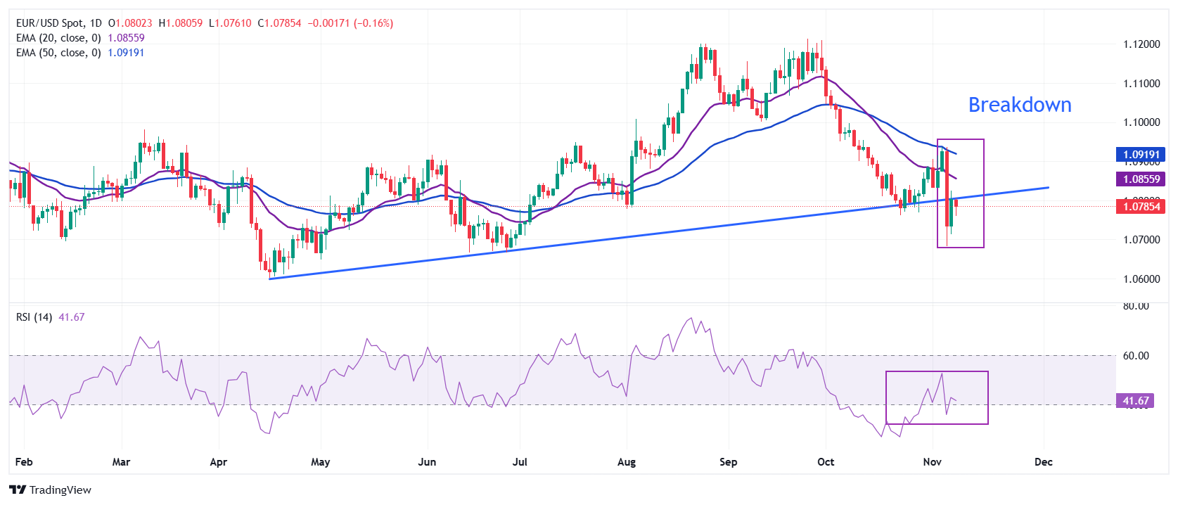 - 随著美元重拾上行趋势,欧元/美元在 1.0800 附近面临大幅抛售