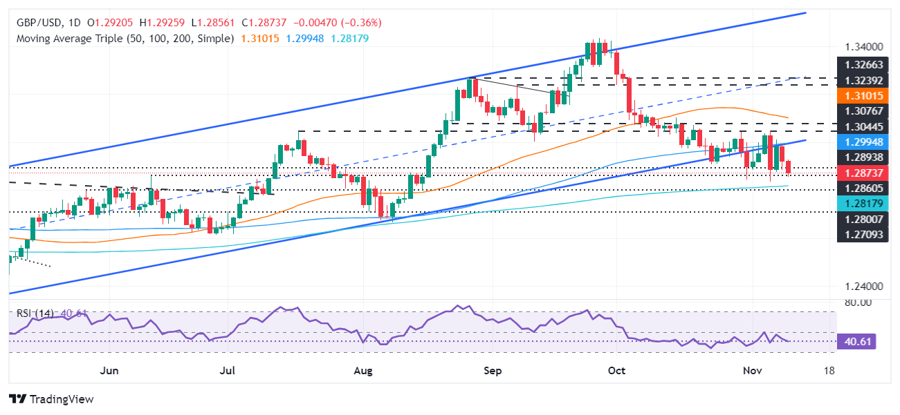 由于担心美国当选总统唐纳德-特朗普(Donald Trump)可能会征收关税,风险偏好恶化,英镑本周𫔭盘下跌,兑美元跌幅超过 0.30%。因此,对风险敏感的英镑/美元货币对跌破了1.2900这一关口,交投于1.2876。
