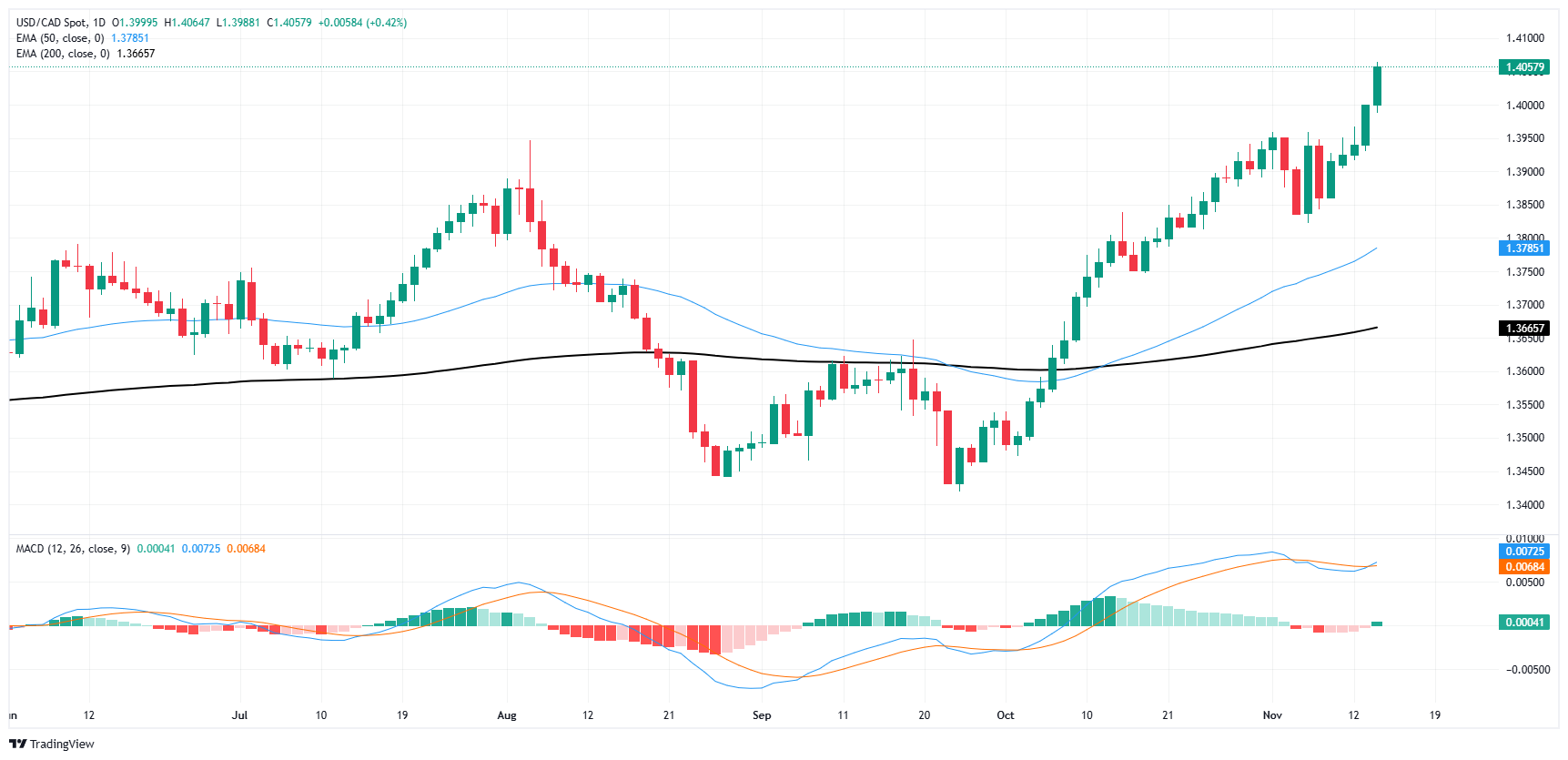 随著美元/加元突破多年高点,加元(CAD)下方的鸿沟正在打𫔭。经过上周的短暂缓和,美元/加元周缐再次收高。自 9 月份在 1.3400 附近触底来,美元/加元已经上涨了近 5%,突破了长期技术阻力并突破 1.4000 关口。