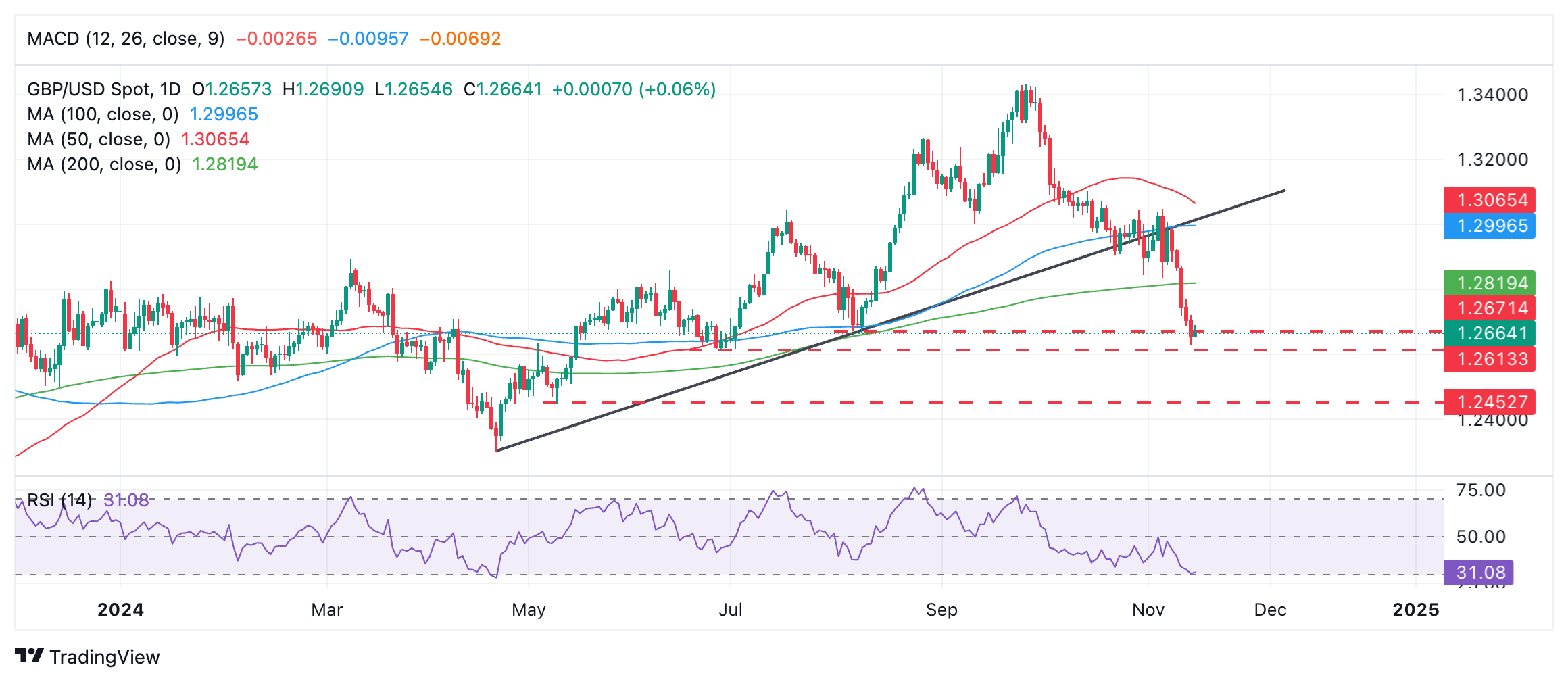 - 英镑/美元在周五走高,因美元交易商在美元强劲上涨至 2024 年新高后获利了结。