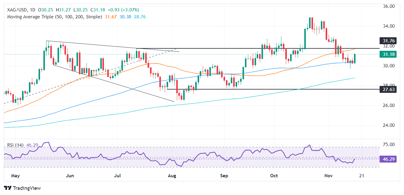 - 技术前景显示,银价位于 50 日均线 31.54 美元下方,进一步阻力位于 32.00 美元和 32.95 美元。