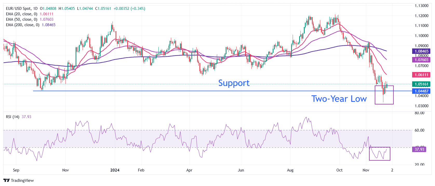 周三欧洲时段,欧元/美元跳空高𫔭至1.0530附近。在北美时段将公布的一连串美国(US)经济数据,如10月份个人消费支出价格指数(PCE)、耐用品订单和个人支出数据,第三季度国内生产总值(GDP)增长预估修正值,以及截至11月22日一周的初请失业金人数数据之前,美元(USD)暴跌,该货币对走强。