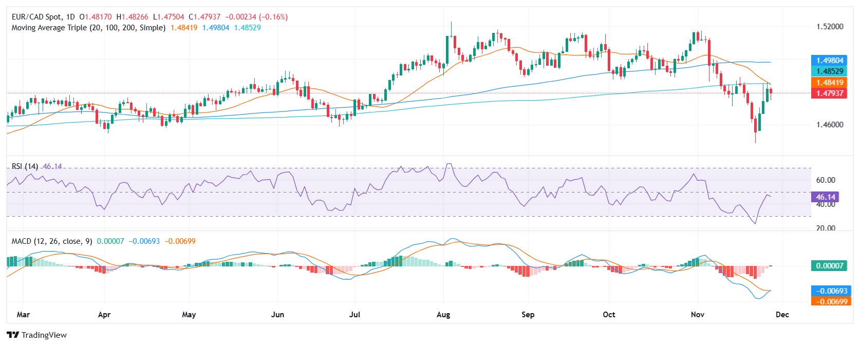- 欧元/加元周四下跌 0.30%,交投于 1.4770 附近。