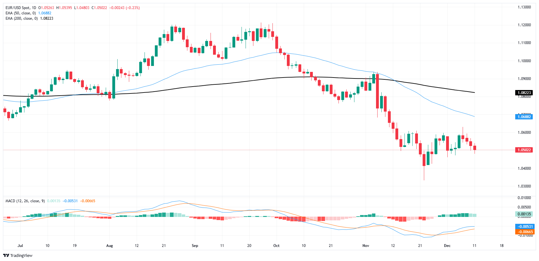- 周三,欧元/美元急剧下跌接近 1.0500 关口。