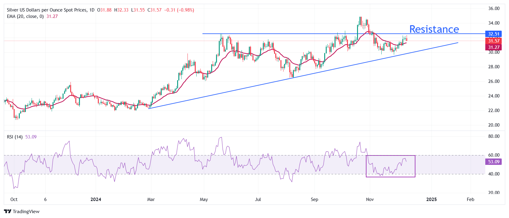 周四北美时段,白银价格(XAG/USD)放弃全部涨幅,跌至31.50美元附近。在為期两天的中国经济工作会议结束后,白银资产面临压力。中国经济工作会议是确定明年经济工作重点的高级别会议。