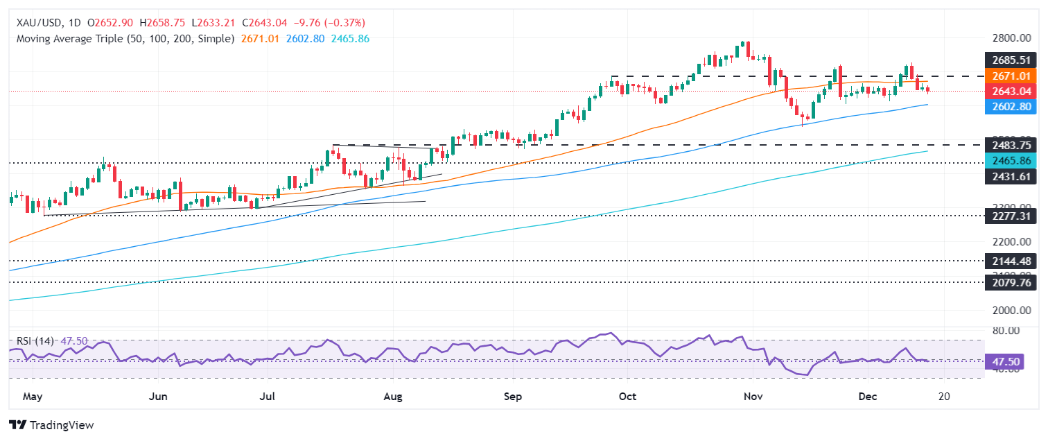 周二,金价在美国强劲的零售销售数据发布后跌至周内新低2,633美元。这削弱了投资者对美联储(Fed)在2025年采取渐进宽鬆措施的预期。截至发稿时,XAU/USD报2,637美元,下跌0.57%。
