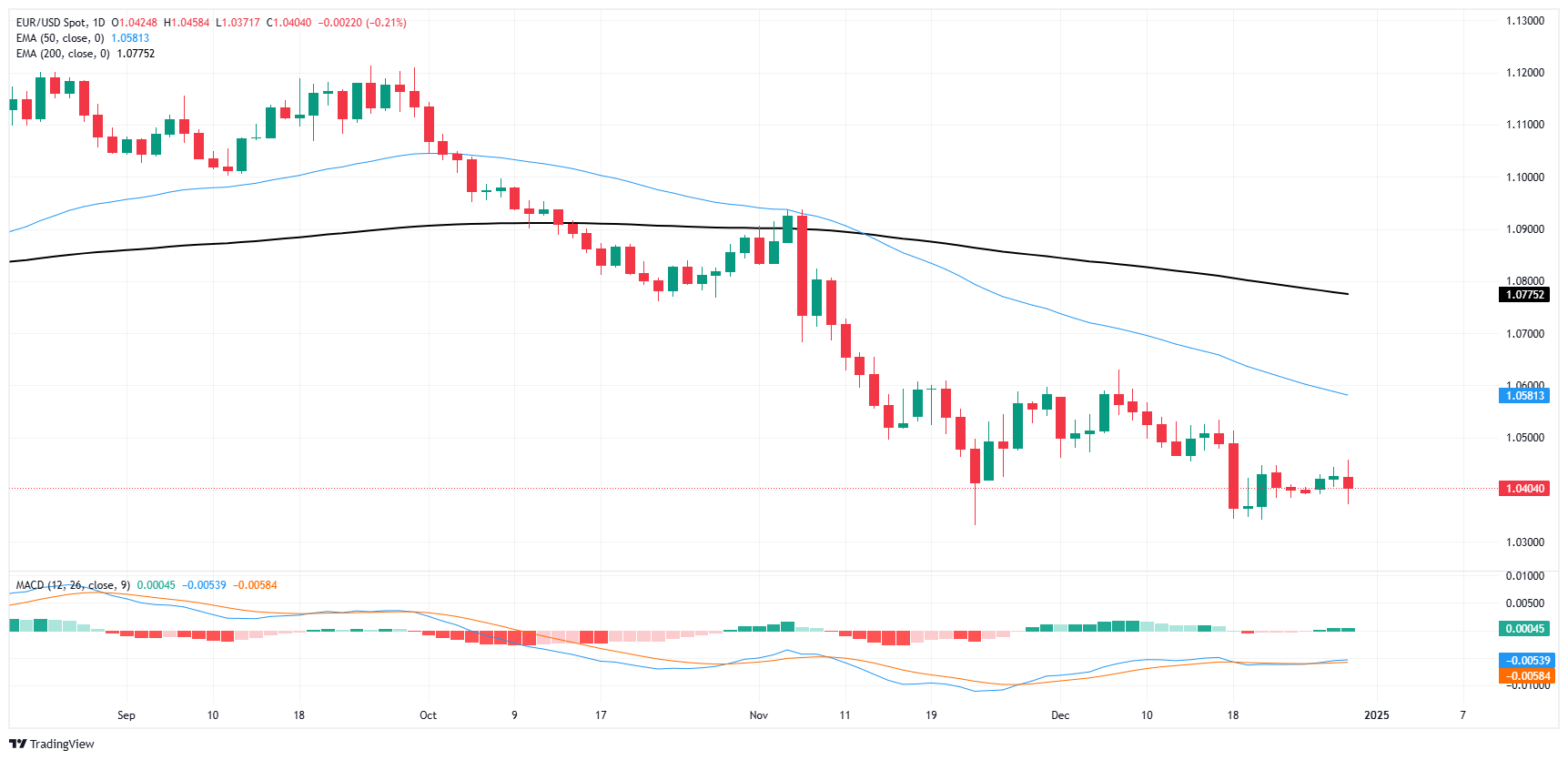 周一,欧元/美元跌破1.0400关口,市场在年末假期期间游走。交易量低迷,投资者对大幅波动犹豫不决,导致风险偏好下降,影响了大多数资产类别,并将欧元/美元打压至近期震盪区间下沿。