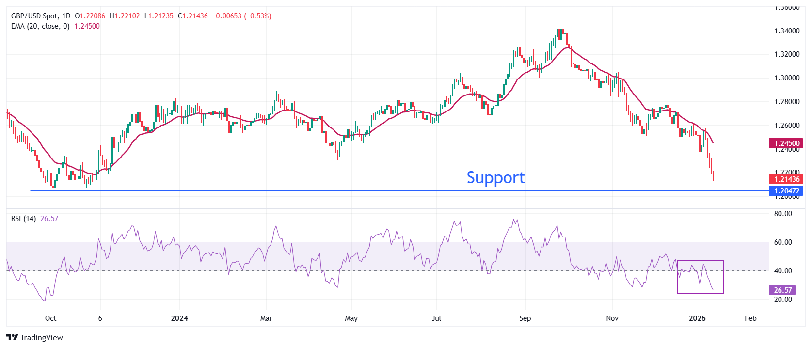 - 周一,英镑兑美元(USD)创下年度新低,接近1.2120。由于意外强劲的美国12月非农就业数据发布后,交易员削减了今年对美联储(Fed)鸽派押注,英镑/美元走弱,美元走强。