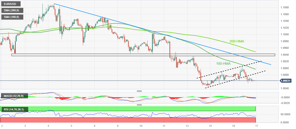 - 欧元/美元跌破相邻的看涨通道后,继续测试月缐低位。