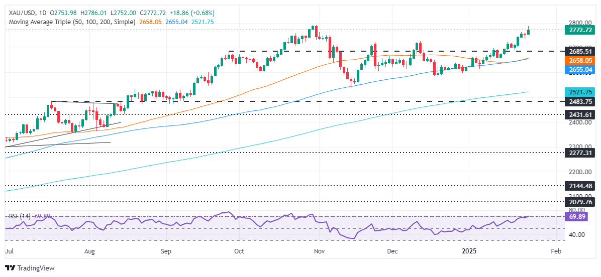 黄金/美元技术展望:金价飙升至2770美元上方,多头目标历史高点