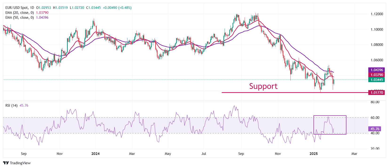 - 欧元/美元大幅反弹至接近1.0350,因為美国总统特朗普推迟了对加拿大和墨西哥的关税命令30天。