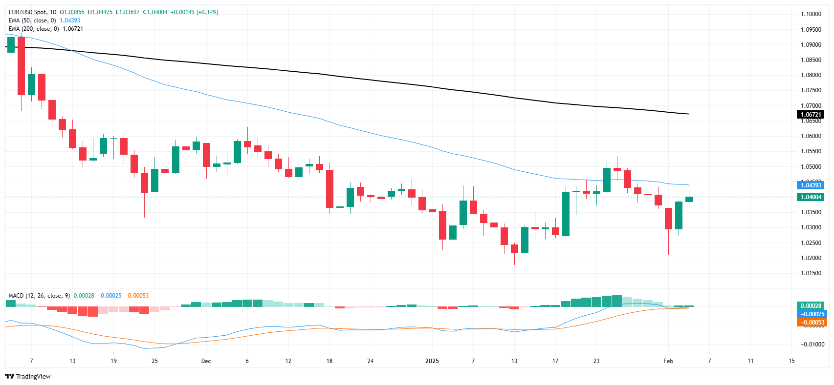 欧元/美元在周中市场𫔭盘时呈现看涨倾向,但疲软的价格走势使该货币对未能突破1.0450水平,50日指数移动平均缐(EMA)在1.0445处对日内𧹒盘施加压力。侭管关键数据发布前动能减弱,但欧元/美元已从本周初跌向1.0200关口的低点有所回升。