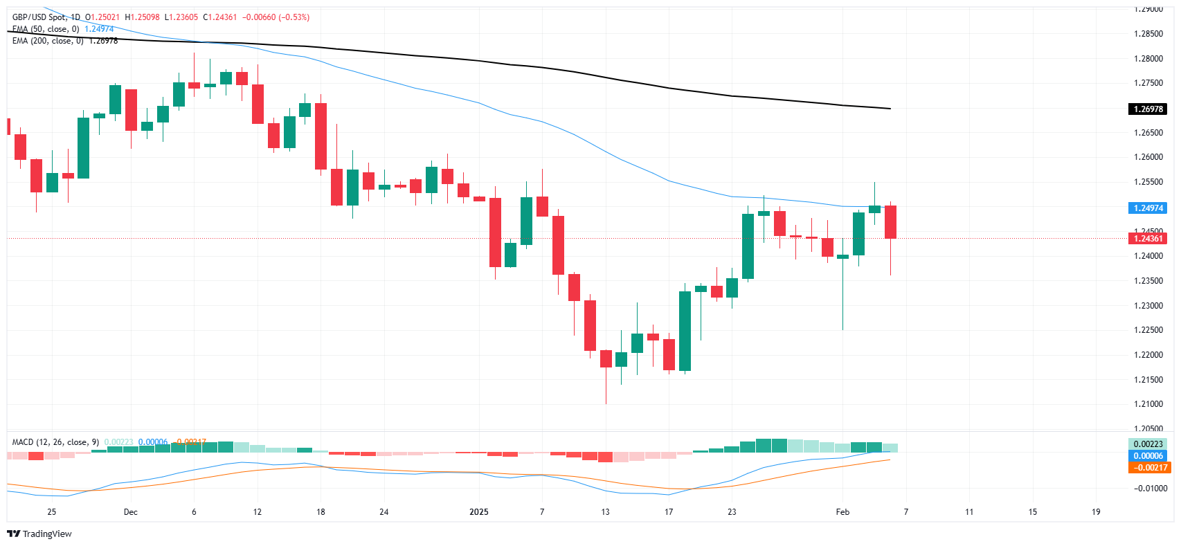 周四,英镑/美元震盪,技术上从关键均缐遭遇拒绝,并测试1.2400关口下方。英国央行(BoE)再次将利率下调25个基点,但语调显得鹰派,导致利率市场降低了对2025年剩馀时间进一步降息的押注。