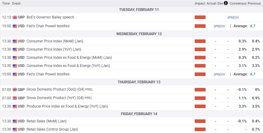 - 英国央行行长贝利、美联储主席鲍威尔、美国CPI通胀和英国GDP均在日程上。