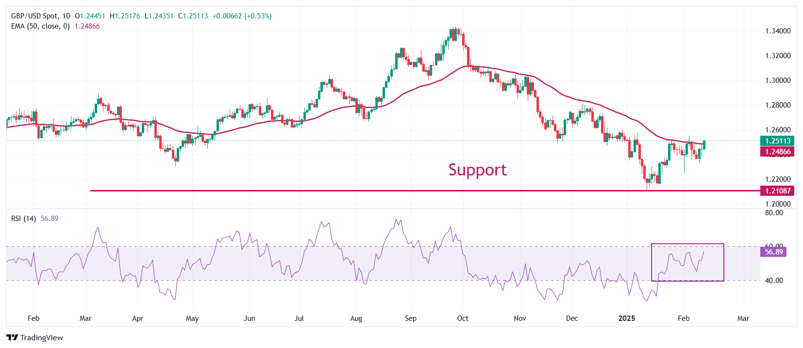 - 周四欧洲交易时段,英镑兑美元(USD)攀升至接近 1.2500 的心理阻力位。由于俄罗斯和乌克兰之间的和平谈判取得积极进展,英镑/美元走强,克服了周三公布的美国 1 月份消费者价格指数(CPI)数据高于预期的影响,这提高了市场对美联储(Fed)将长期维持当前利率水平的预期。