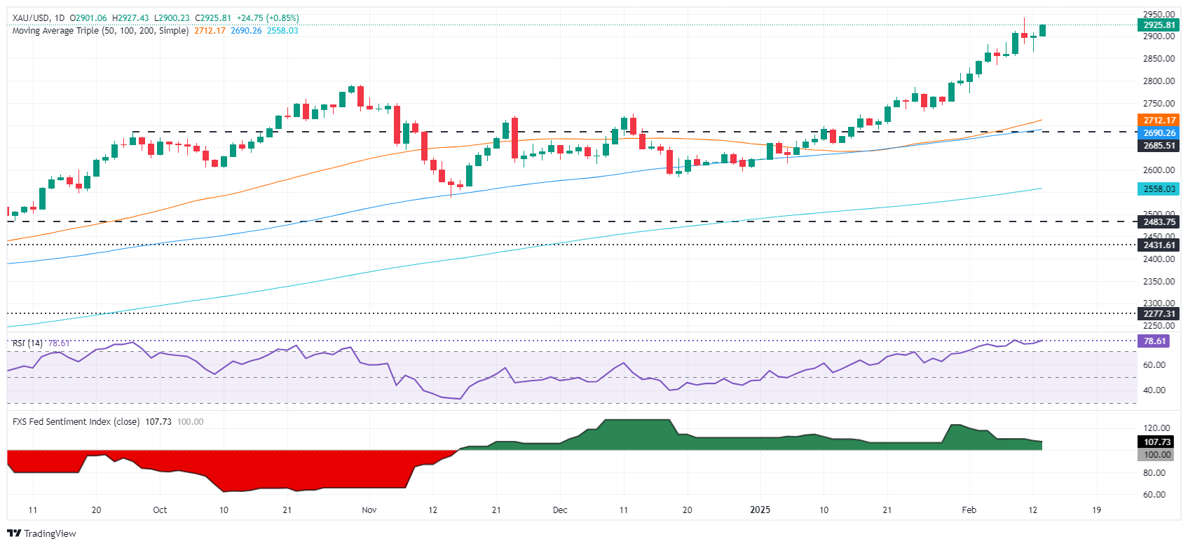 在相对强弱指数(RSI)转為平稳后,目标更高,表明多头正在进场。也就是说,XAU/USD的下一个关键阻力位将是2942美元的历史高点。突破后者将暴露2950美元,随后是3000美元的里程碑。