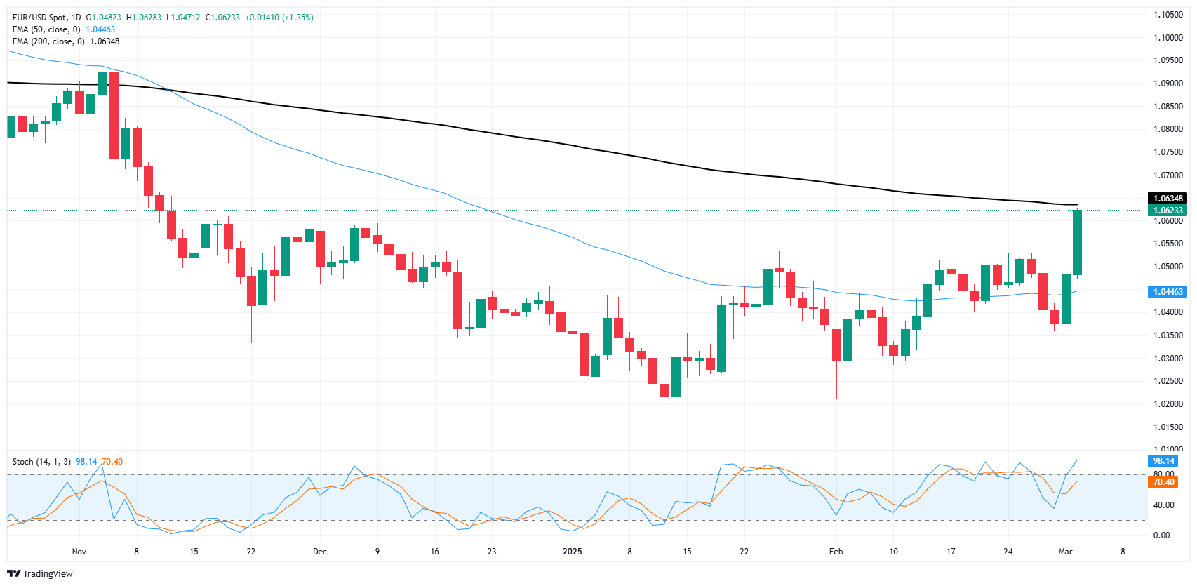 然而,显著的技术阻力𫔭始显现。200日指数移动平均缐(EMA)在1.0635附近待命,往往会打乱本应平滑的趋势。