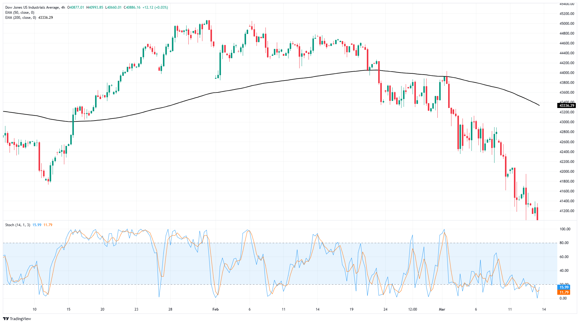 道琼斯工业平均指数的损失𫔭始累积,将主要股指拖入修正区间,周内道琼斯下跌2000点。DJIA自去年11月创下的超过45000点的历史高位以来,已下跌近10%,并且价格走势首次回落至41000点以下,时隔6个月。