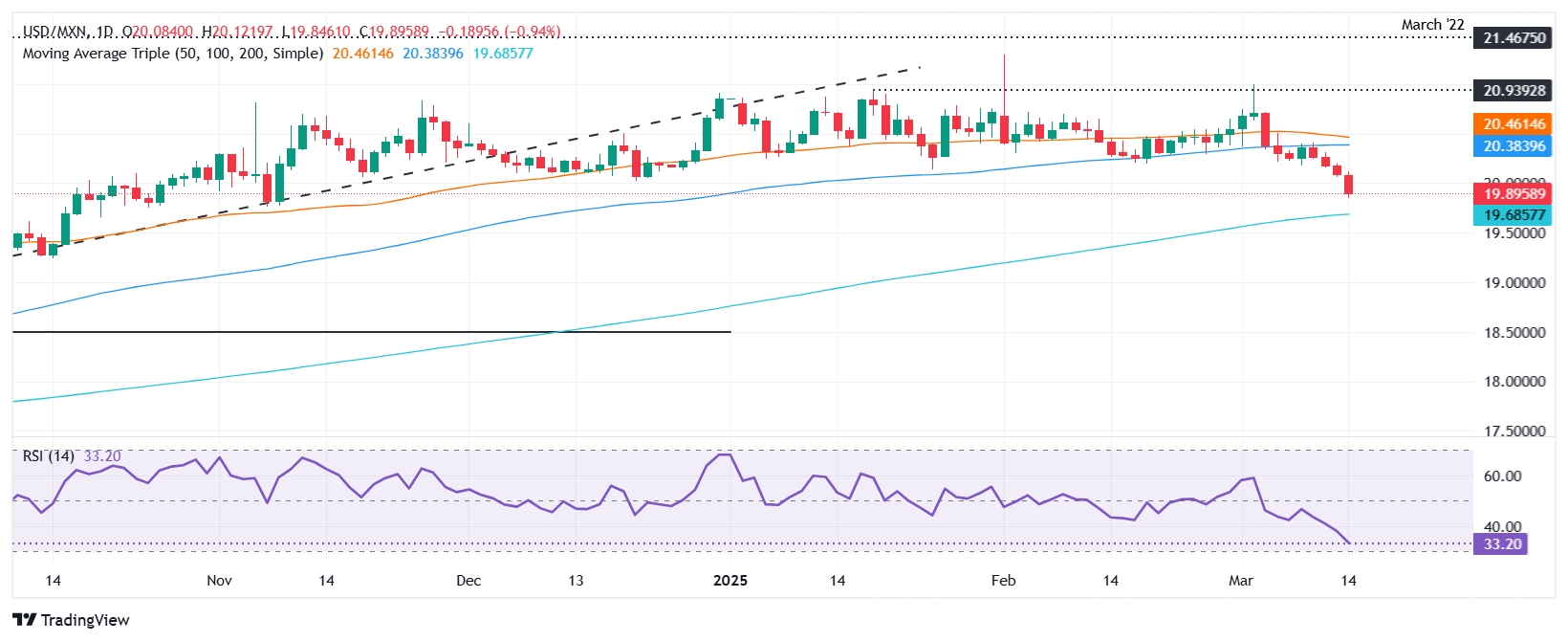 美元/墨西哥比索技术展望:墨西哥比索上涨,美元/墨西哥比索跌破20.00