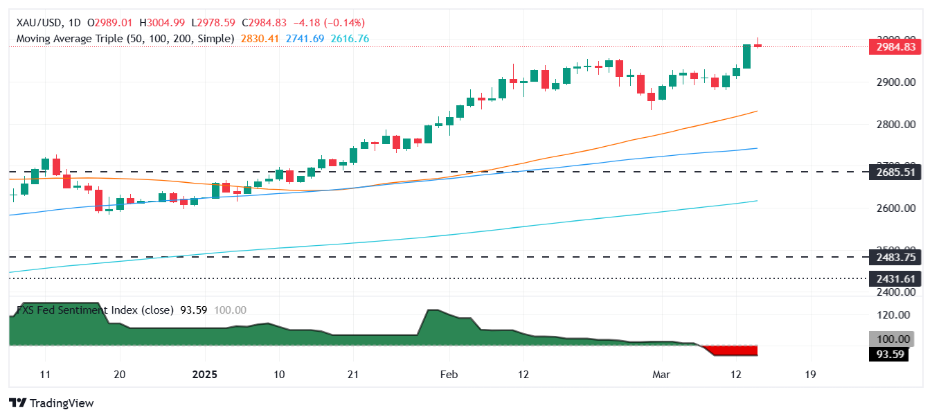 XAU/USD技术展望:黄金价格难以维持在3000美元以上