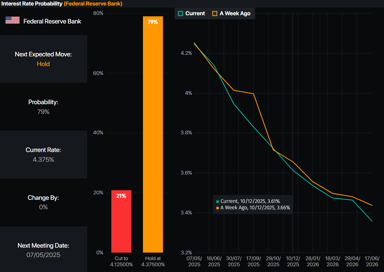 与此同时,货币市场已定价 2025 年美联储将降息 73.5 个基点,比前一天增加了 10 个基点,根据 Prime Market Terminal 的利率概率。