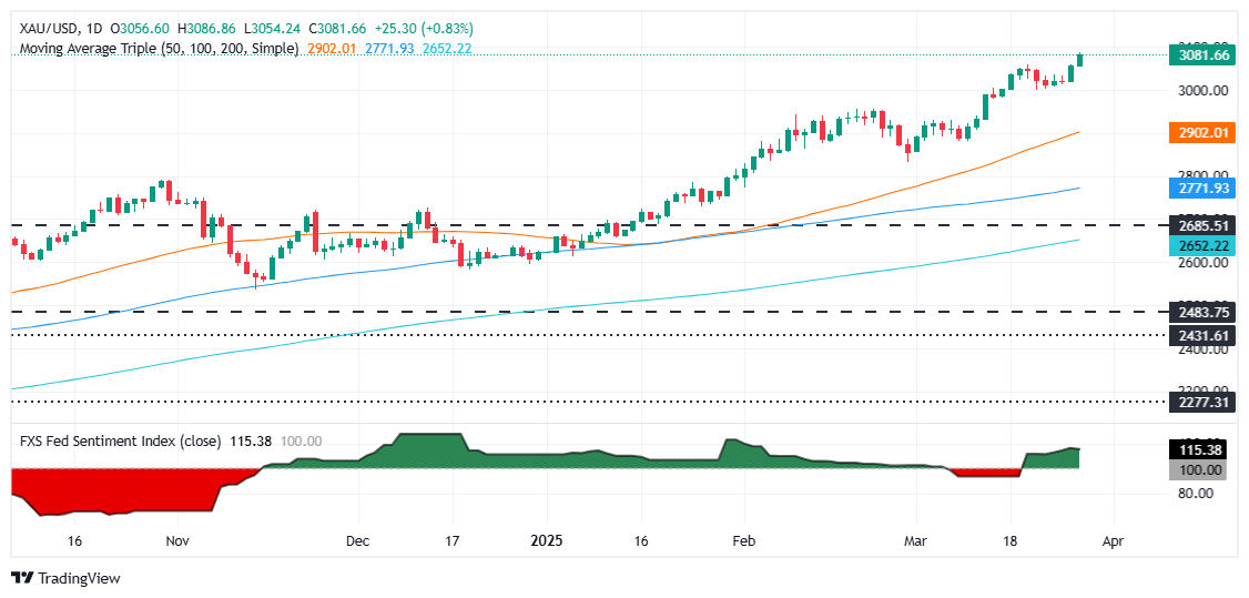 XAU/USD 技术展望:黄金价格突破 3,050 美元,关注 3,100 美元