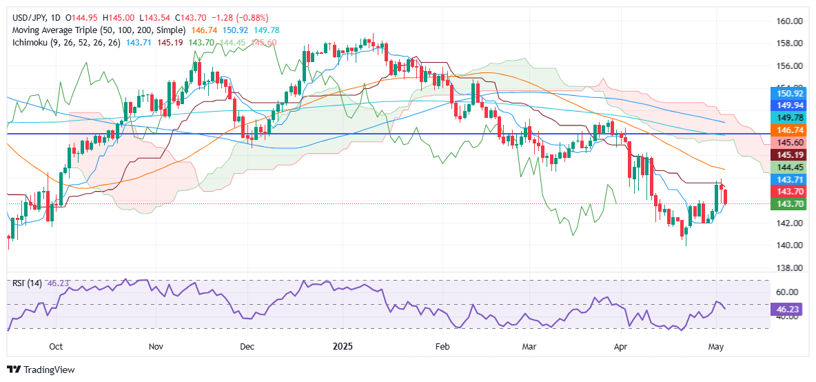 - 美元/日圆在20日简单移动平均缐(SMA)处找到支撑;需要日收盘在144.00以上以重新获得看涨动能。