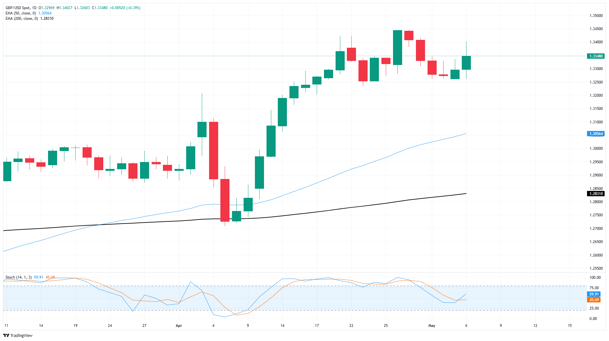 英镑/美元周二上涨,日内上涨四个基点,测试1.3400关口,因有可能达成的美英贸易协议的消息,这将使英国避免特朗普政府积极追求的贸易关税的冲击。