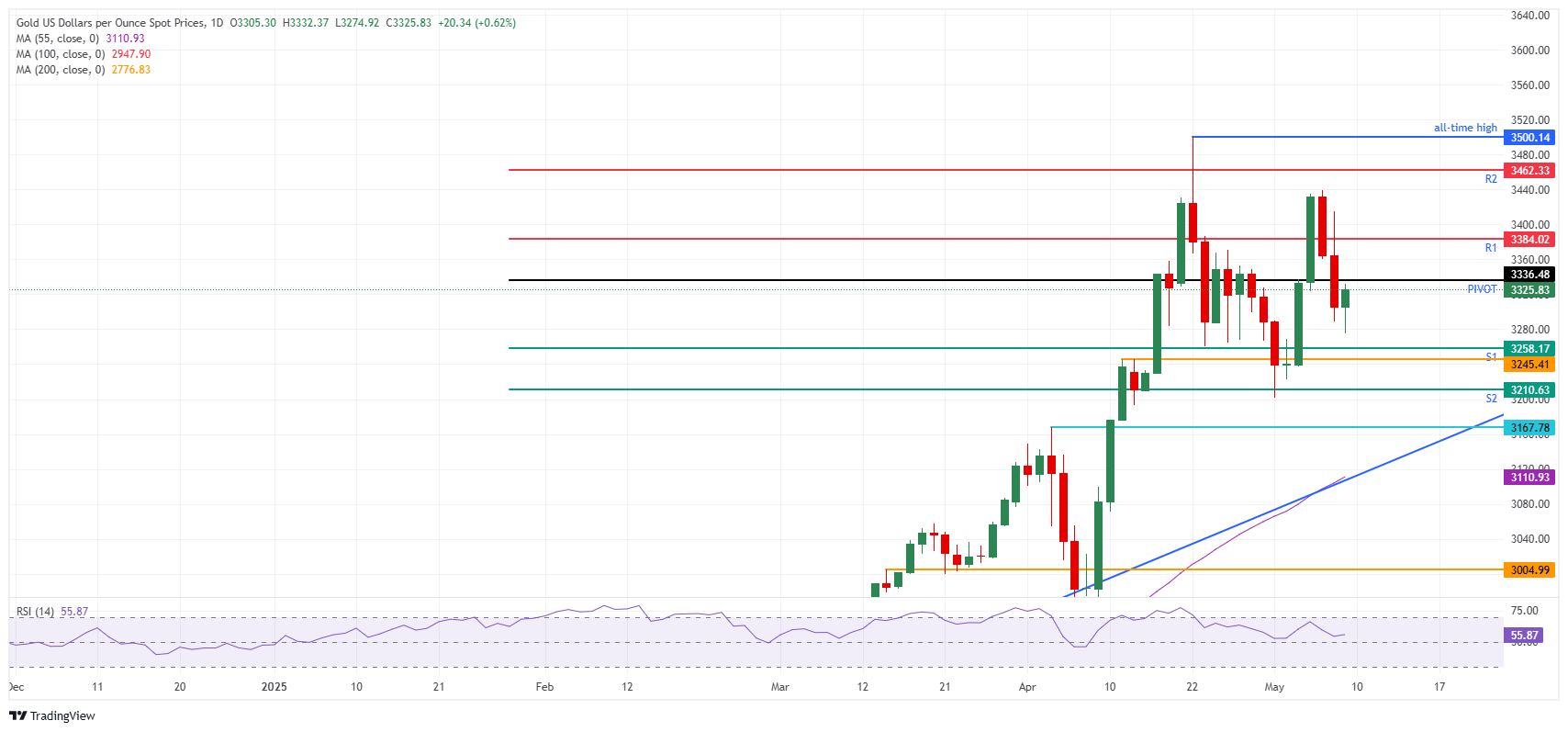 黄金(XAU/USD)周五上涨接近1%,在撰写时回升至3325美元以上。由于市场将周四美国(US)与英国(UK)之间宣布的贸易协议称為"无关紧要",贵金属价格正在上涨。美英贸易协议為美国提供了更好的市场准入和更快的出口到英国的海关流程,但未能达成"全面和综合"的协议。同时,10%的关税将继续存在,英国将被迫接受价值100亿美元的波音订单,彭博社报导。
