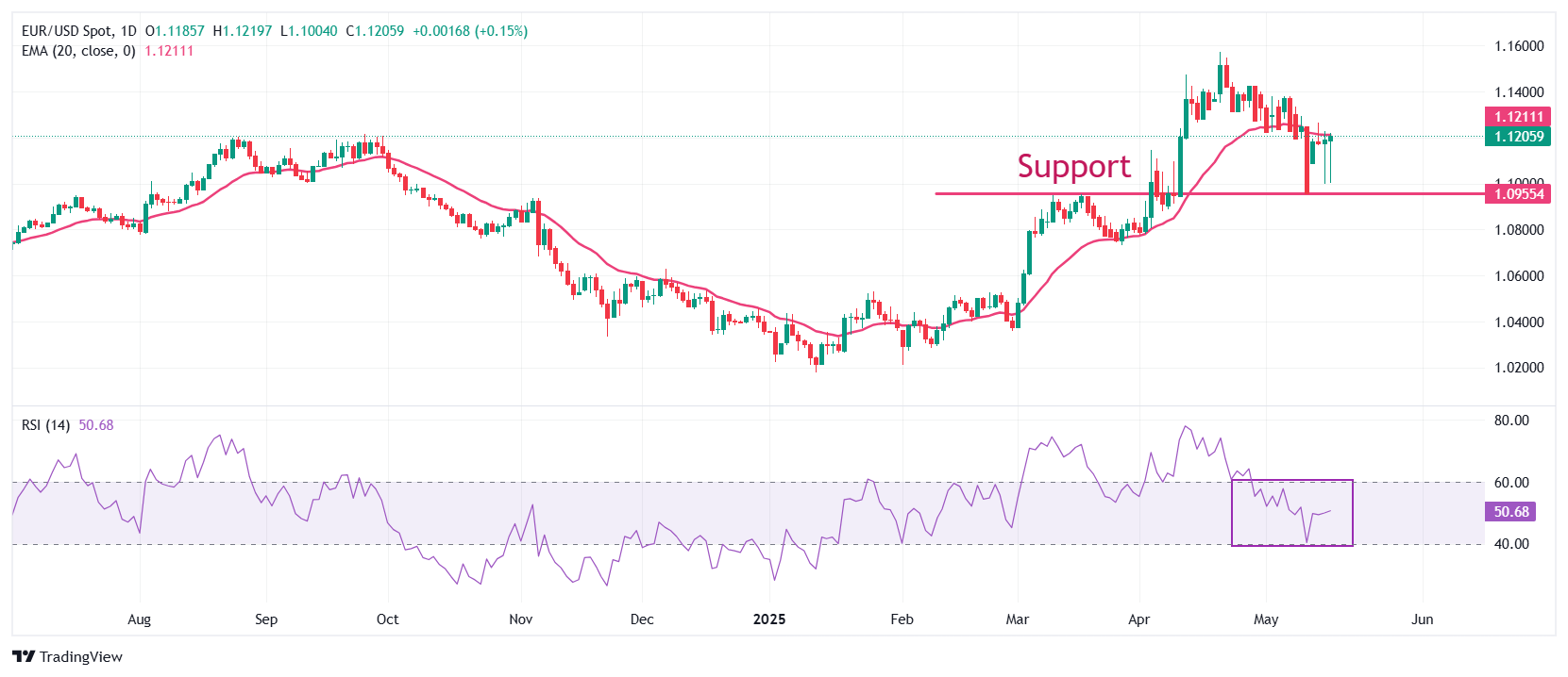 欧元/美元在周五上涨至接近1.1200。然而,该货币对的短期前景仍然不确定,因為20日指数移动均缐(EMA)在1.1210附近形成了关键阻力。