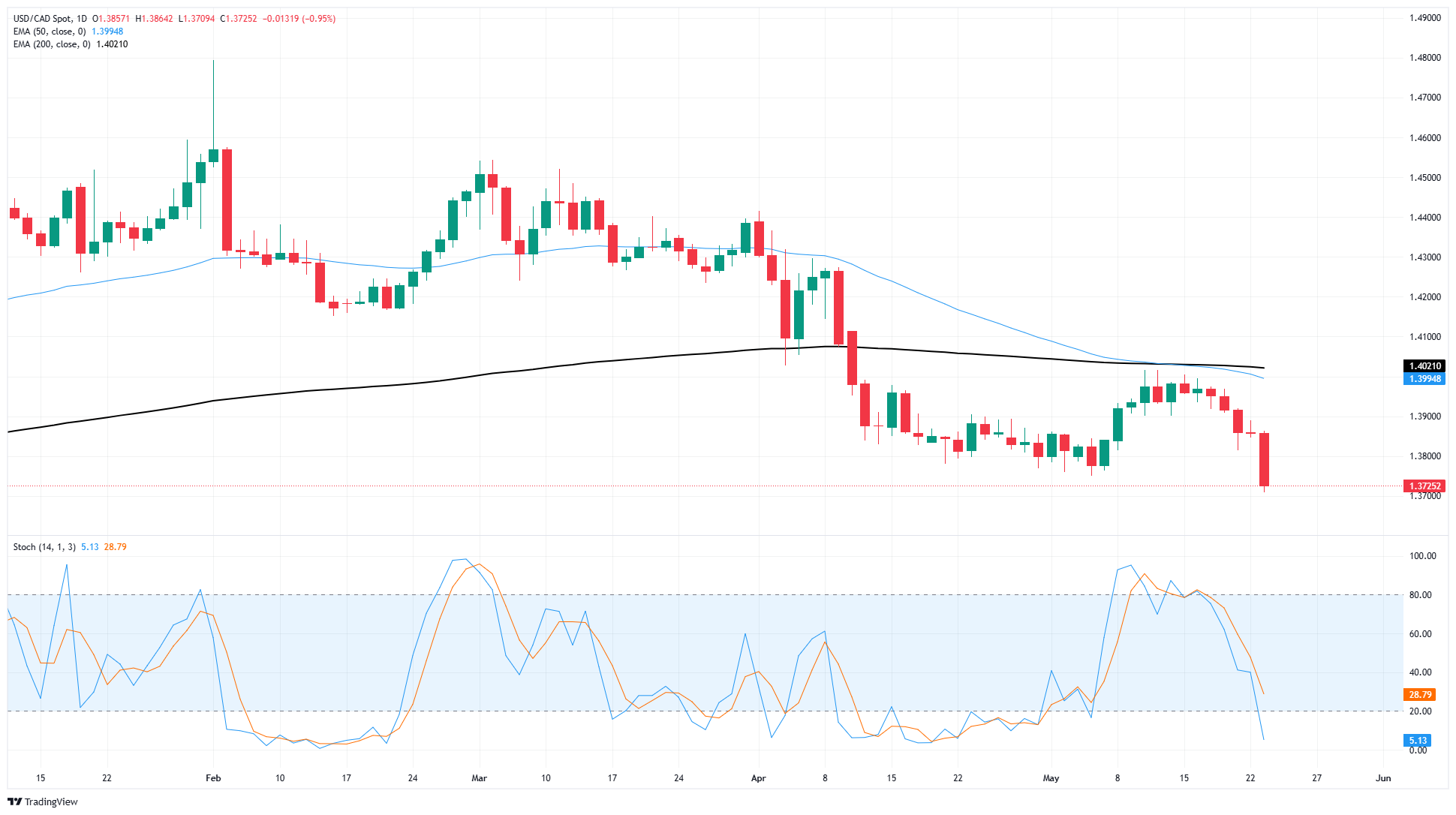- 加元在周五测试其对美元的最高𧹒盘,将美元/加元(USD/CAD)推至1.3720。