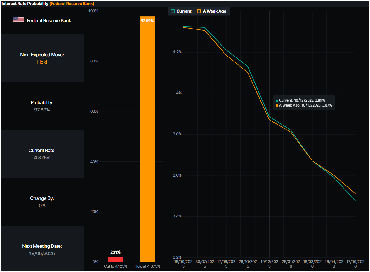 - 根据 Prime Market Terminal的数据,货币市场显示交易者预计年底前将降息49.5个基点。