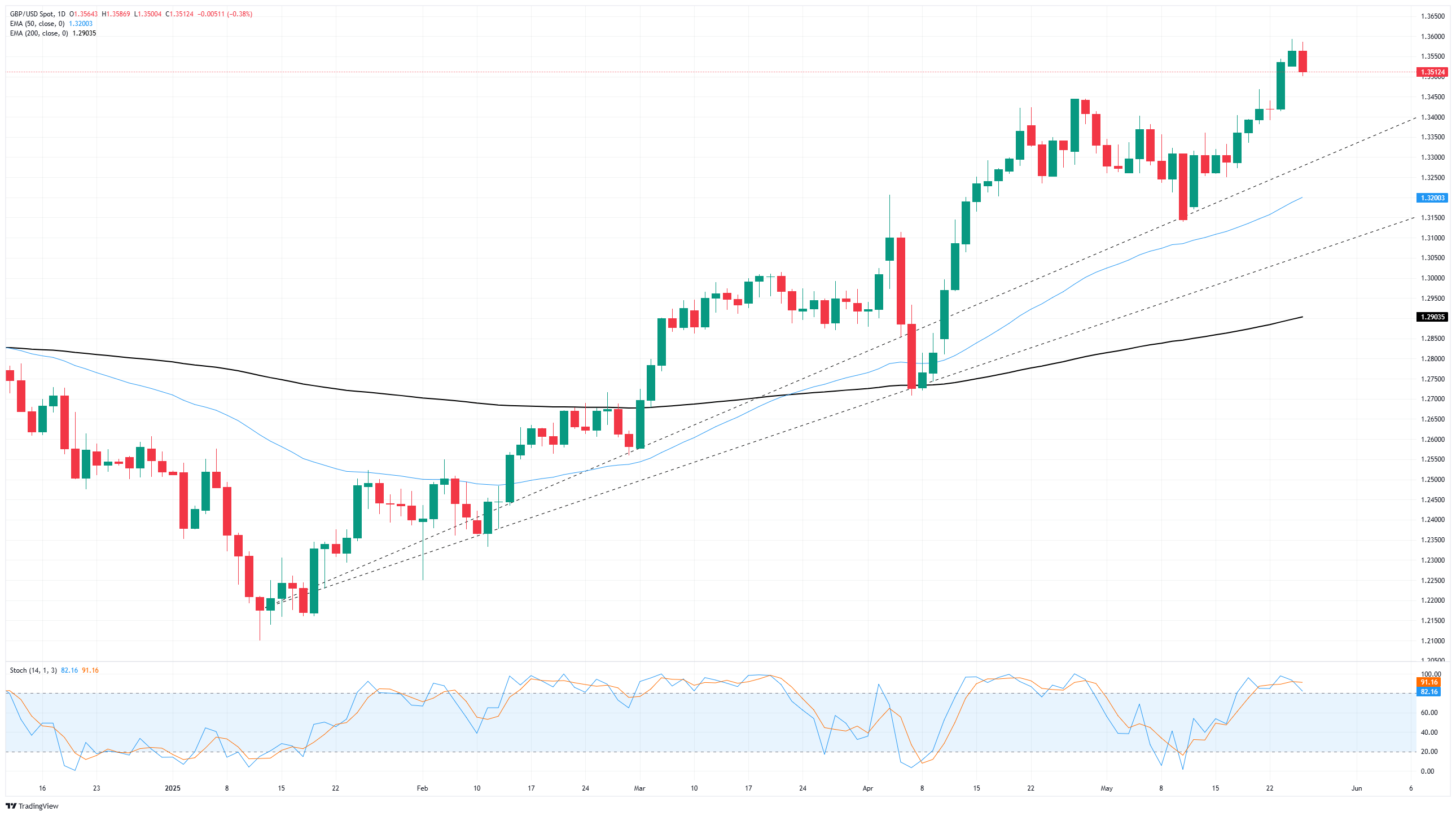 英镑/美元在周二削减了近期的涨幅,结束了六天的连胜,价格走势从1.3600关口回落,此前该货币对在本周触及了数年新高。由于特朗普政府再次退回其关税威胁,广泛市场投资者情绪的另一波关税谈判推动的上涨支撑了美元(USD)。