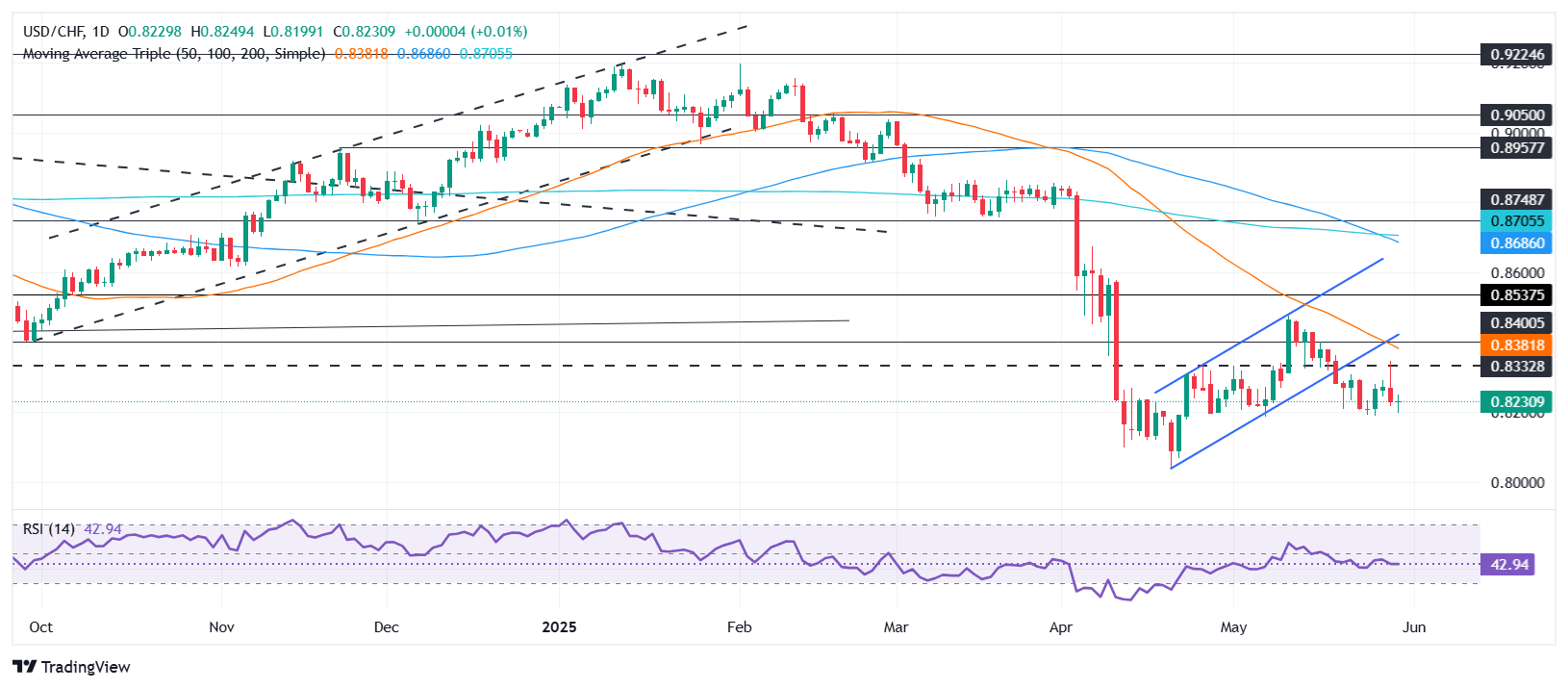 - 相对强弱指数(RSI)保持看跌;若跌破0.8200,可能会暴露出5月7日的低点和年内低点0.8034。