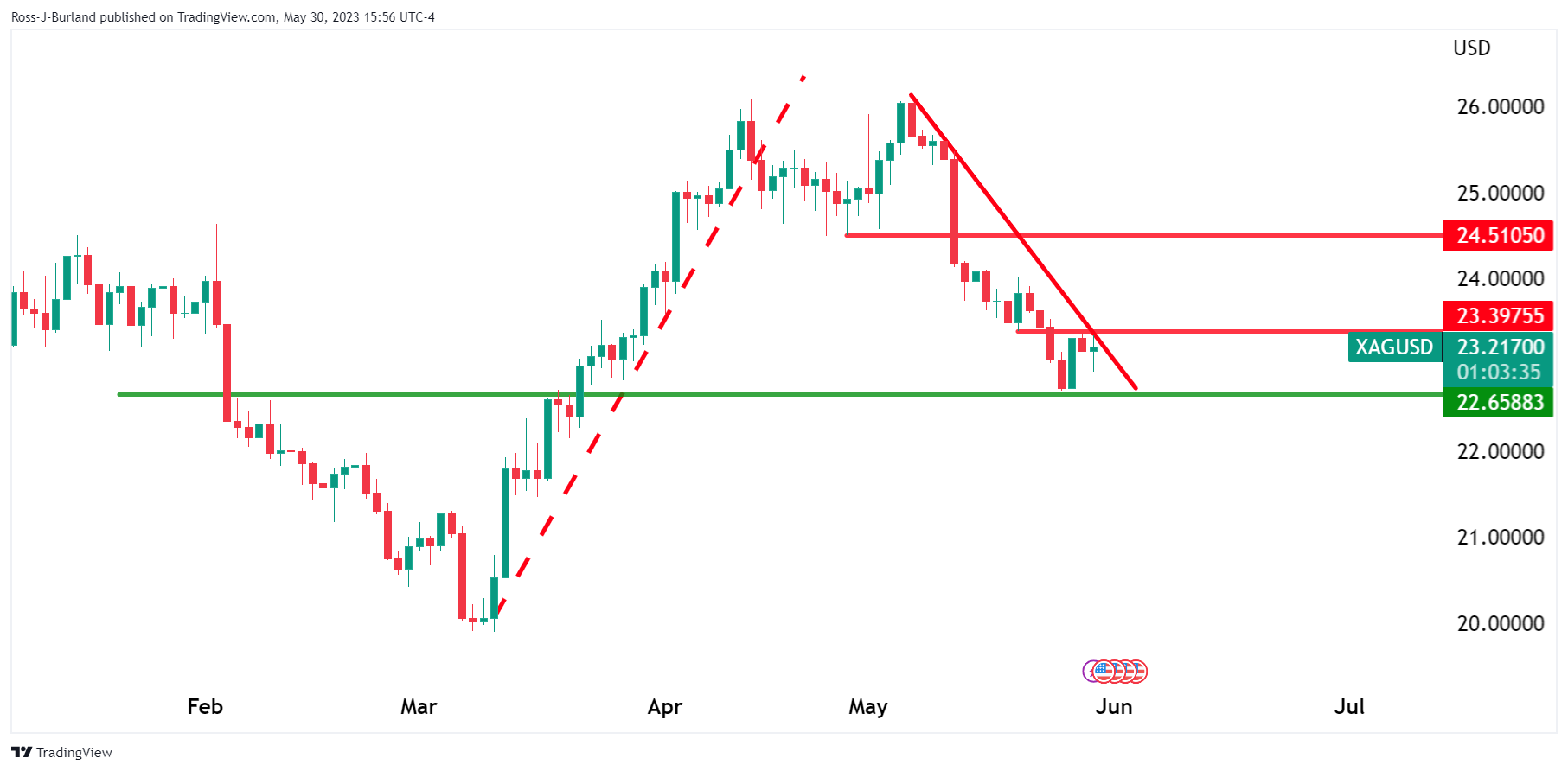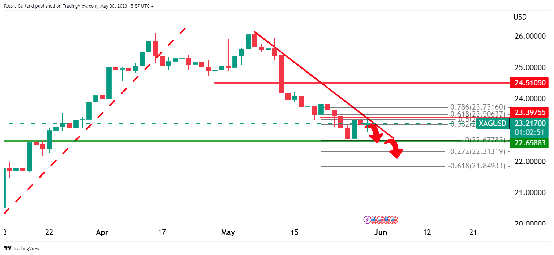 银价处于看跌趋势正面,但已经接近潜在的需求区域,可能会看到空头认输。