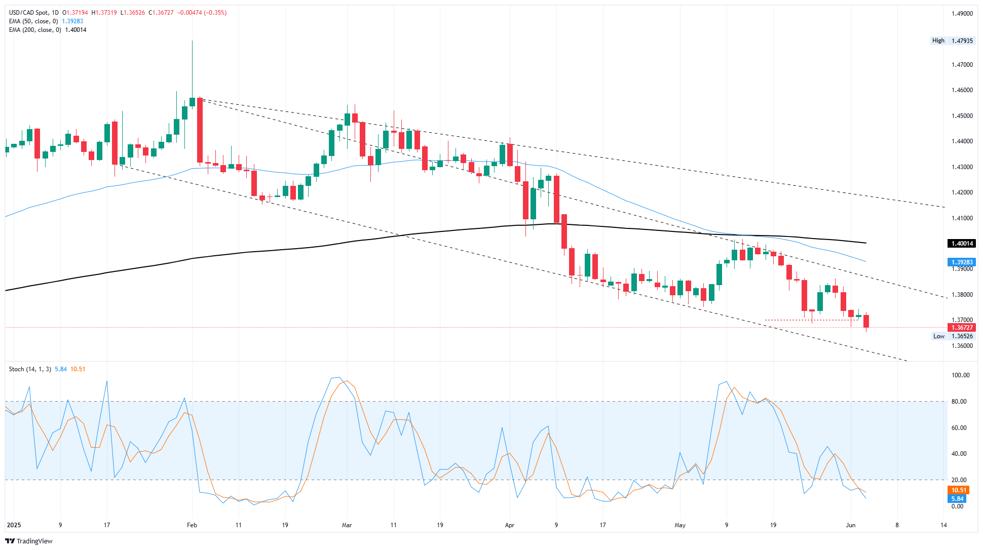 加元对美元再次获得新进展,使美元/加元跌至新的八个月低点。6月份的交易期刚刚𫔭始,加元已经有望连续第五个月对美元走强。