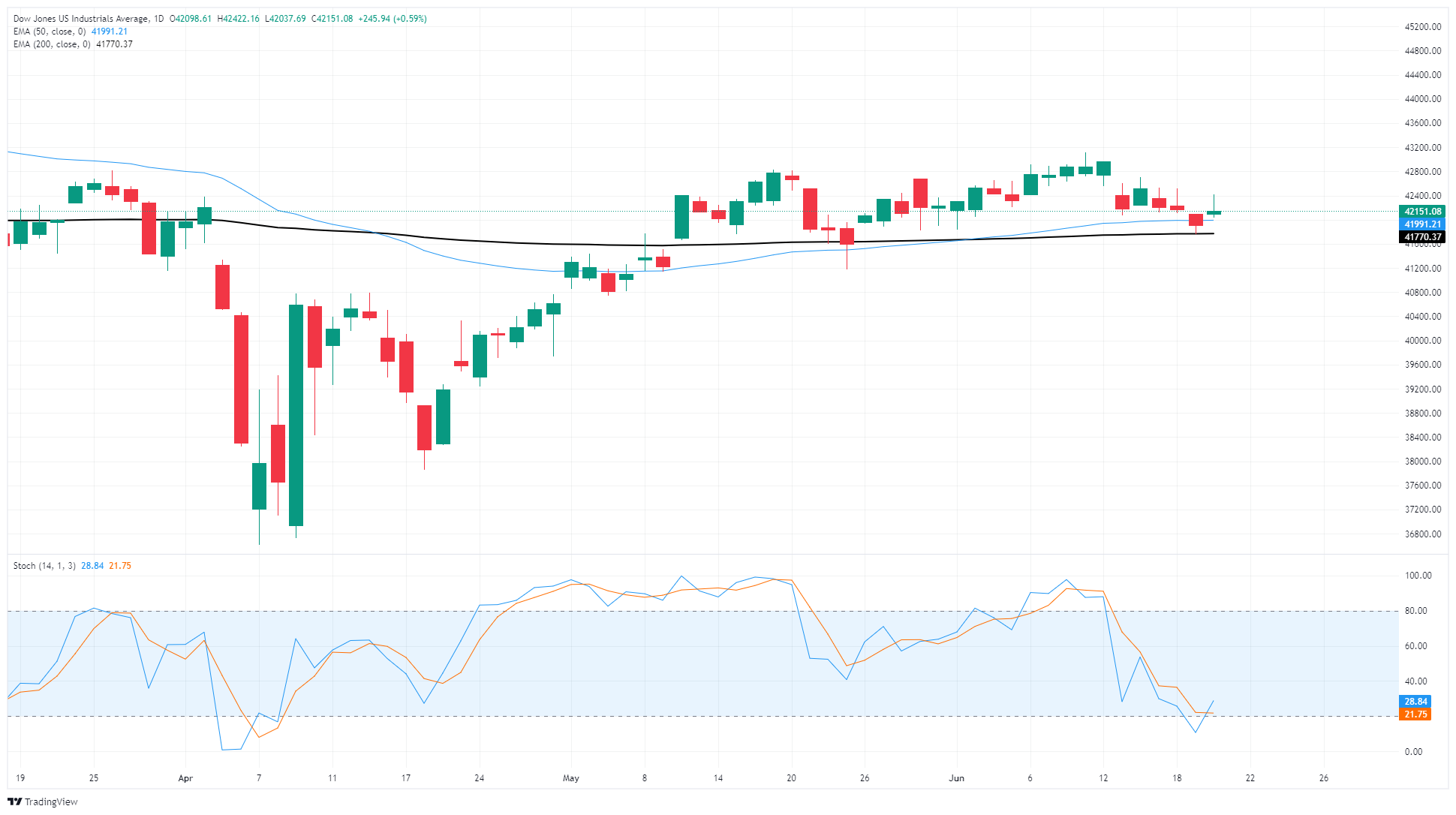 道琼斯工业平均指数仍然处于短期整合阶段。该主要股指在42,000价格关口之上徘徊,但日内价格仍在41,770附近的200日指数移动平均缐(EMA)获得技术支撑。
