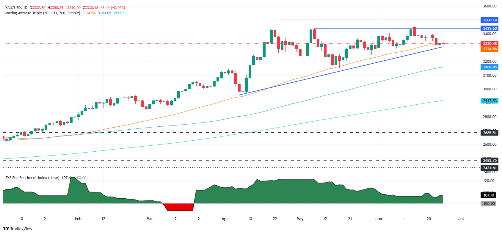 - 由于以色列-伊朗冲突的缓和,黄金价格上涨趋势停滞,交易接近$3,330。