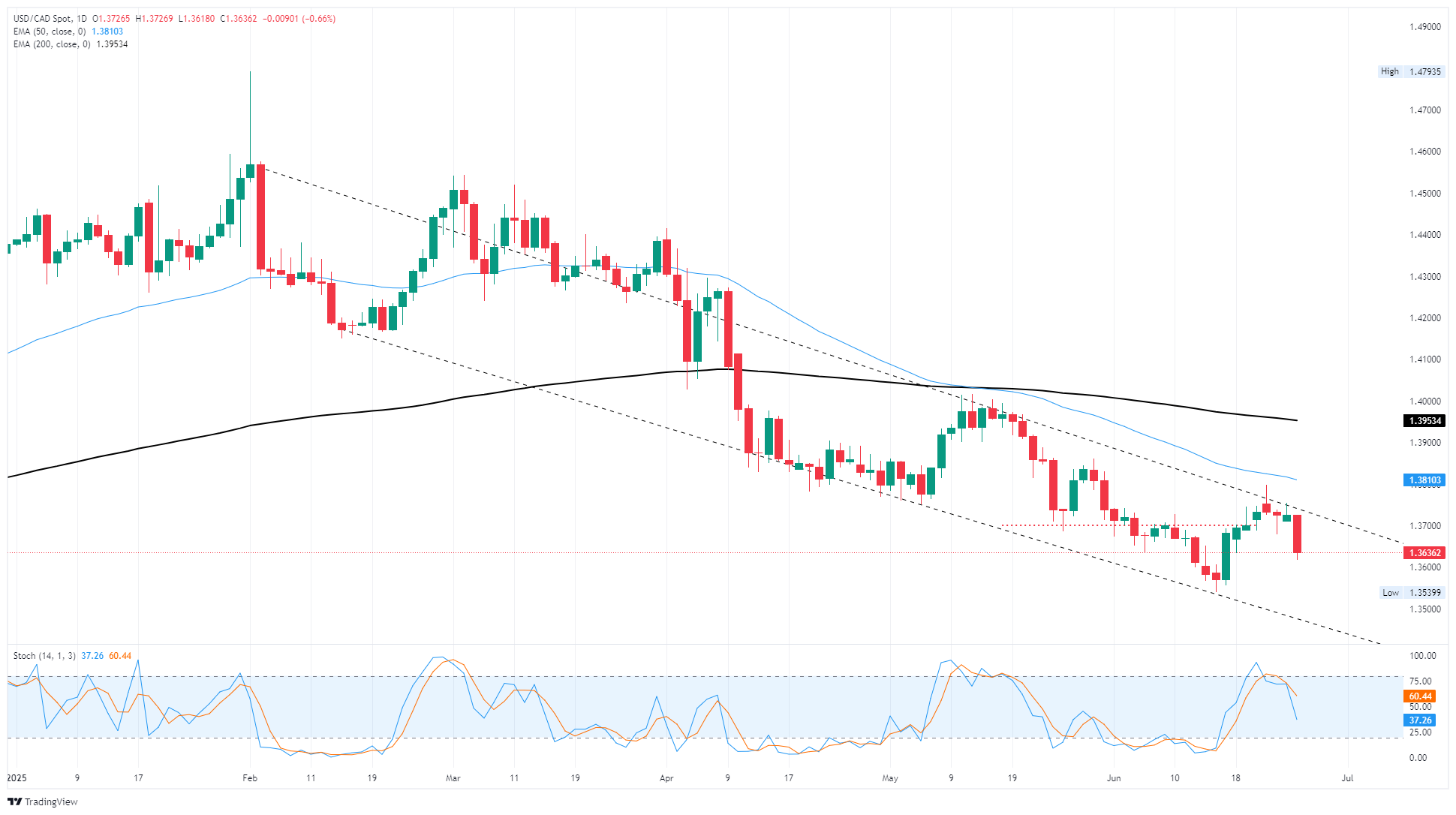 - 加拿大元兑美元上涨至一周多以来的最高报价,推动美元/加元下跌至1.3600附近。