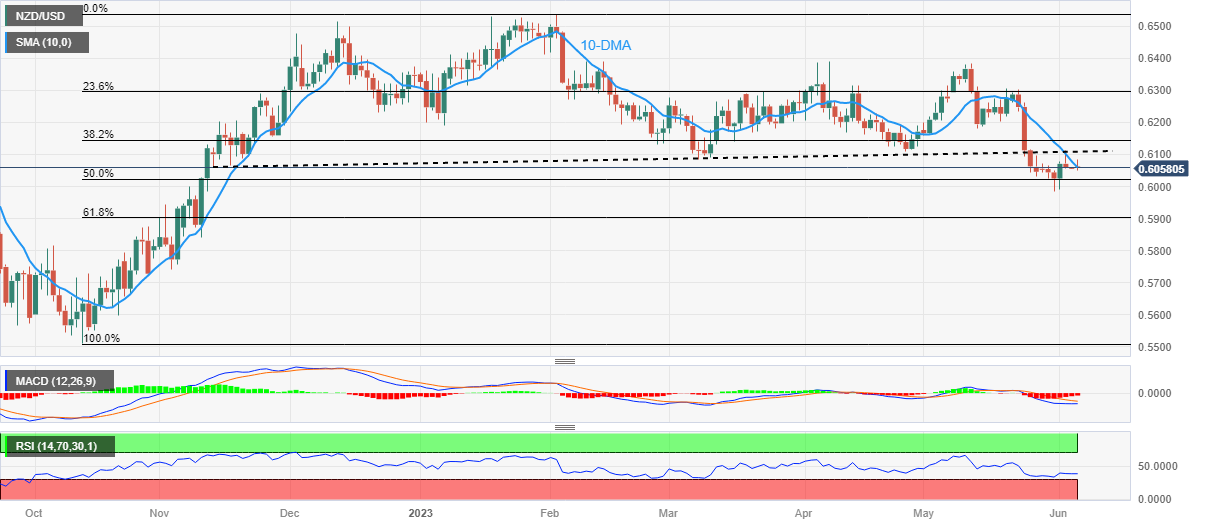 除了10-日移动均缐和前期自2022年11月以来延续的支撑缐,分别在0.6060和0.6110附近成為关键水平外,新西兰市场因假期休市,也使得纽元/美元延续前期跌势。