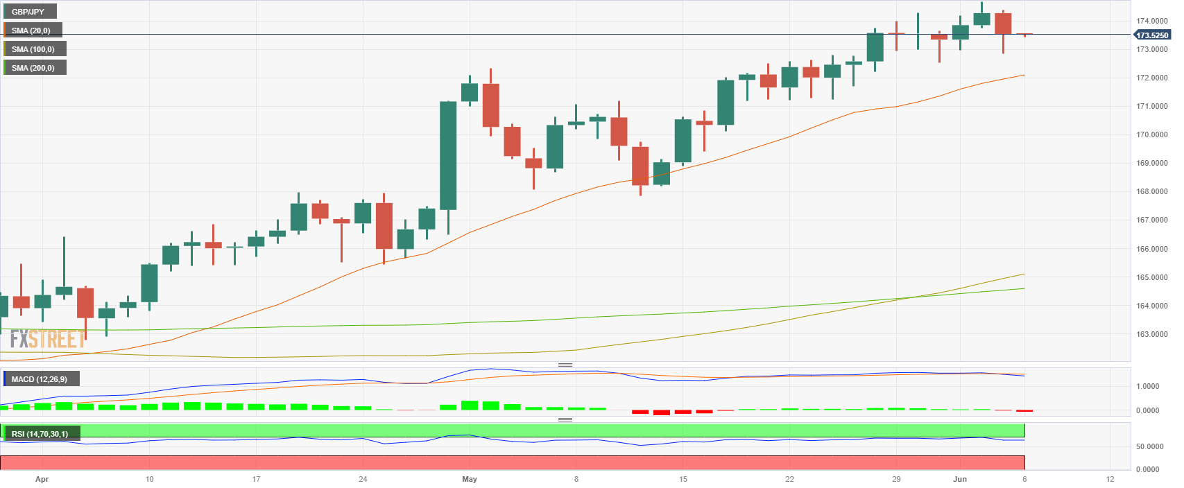- 英镑/日元跌至日低172.85,英镑/日元似乎正整理超𧹒状况。