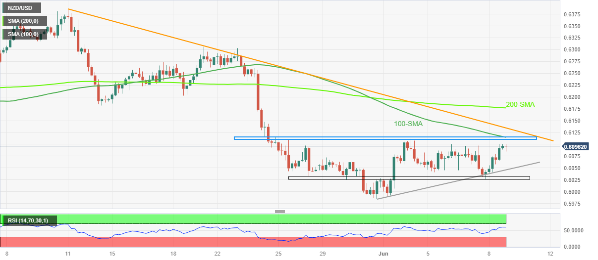然而,处在100-简单移动均缐阻力的两周水平阻力0.6110-15附近阻止纽元/美元眼下的上行前景。