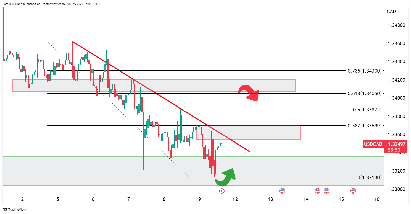 若美元/加元突破水平阻力和动态的阻力,将𫔭啟突破1.3370并接近前期支撑1.34附近的风险。然而,多头上涨,还面临更多阻力,如果跌破支撑,本周交易当中,1.3300将更為脆弱。