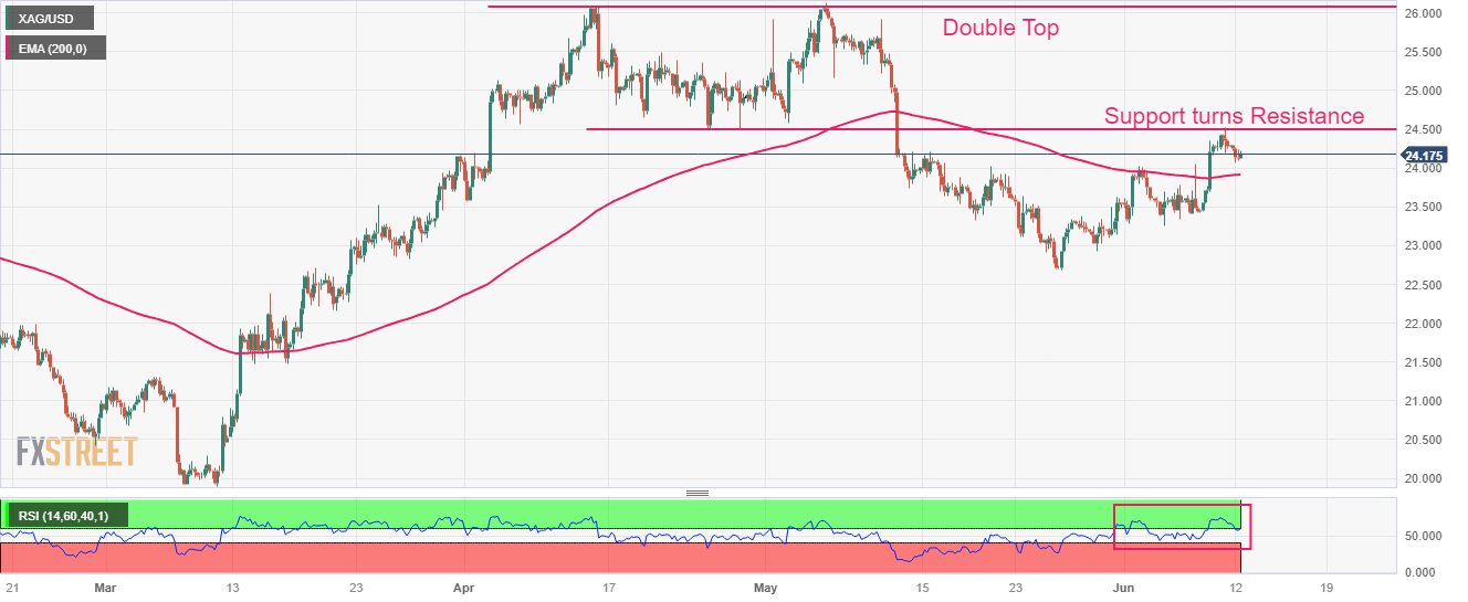两小时图显示,金价在1954-1970美元的窄幅范围内盘整,这表明波动性收缩,随后是更宽的区间和剧增的成交量。从更广泛的角度来看,金价的上行空间从5月18日高点1,986.00美元附近受到限制,而下行空间则限于5月26日低点1,936.77美元附近。