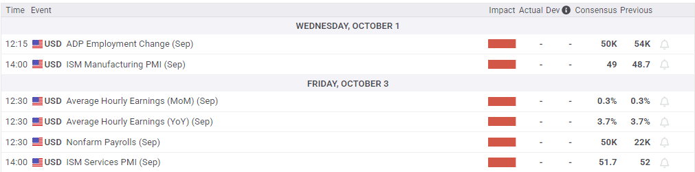 最新的非农就业报告(NFP)目前定于周五发布,如果美国政府进入关门阶段,可能会被推迟。就业数据已成為投资者关注的热点问题,因為美联储(Fed)正在努力利用利率来提振目前滞后的劳动力市场,并控制通胀。