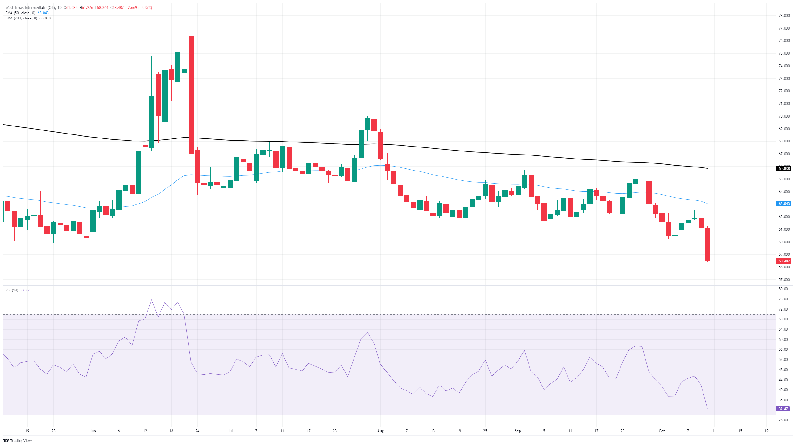 - 西德克萨斯中质原油(WTI)价格在周五首次跌破每桶60美元。