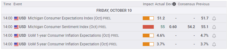 密歇根大学(UoM)的消费者信心指数在十月份的跌幅小于预期,為准备迎接更糟糕结果的投资者提供了微薄的提振。UoM 1年期消费者通胀预期也从4.7%降至4.6%,然而,5年期的指标仍维持在3.7%的高位。