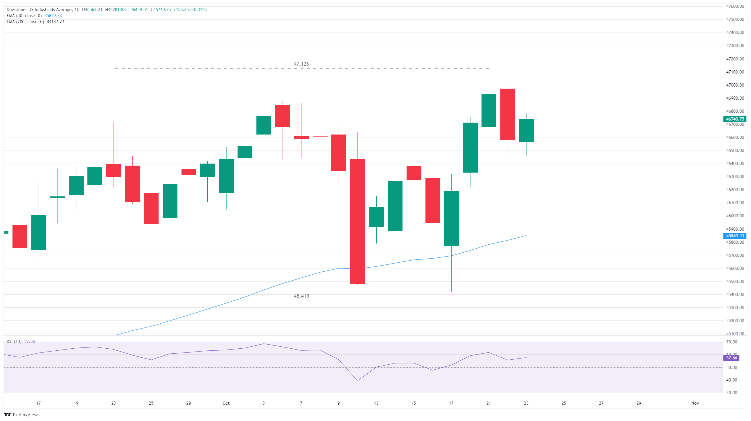 - 道琼斯指数在周四重新回到46,600以上,削减了前一交易日的损失。